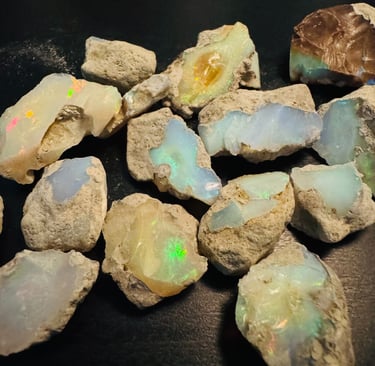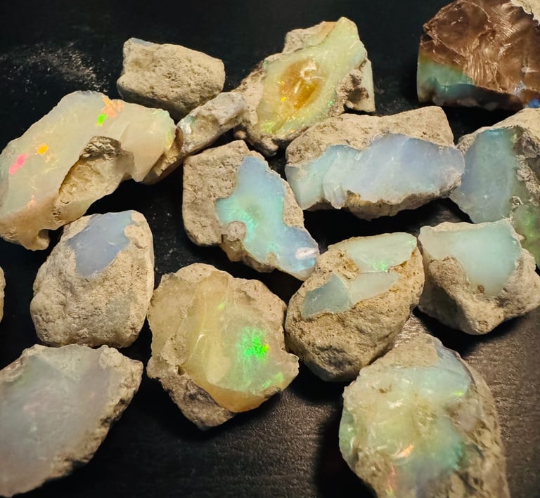 Vibrant rough and polished Ethiopian opals.